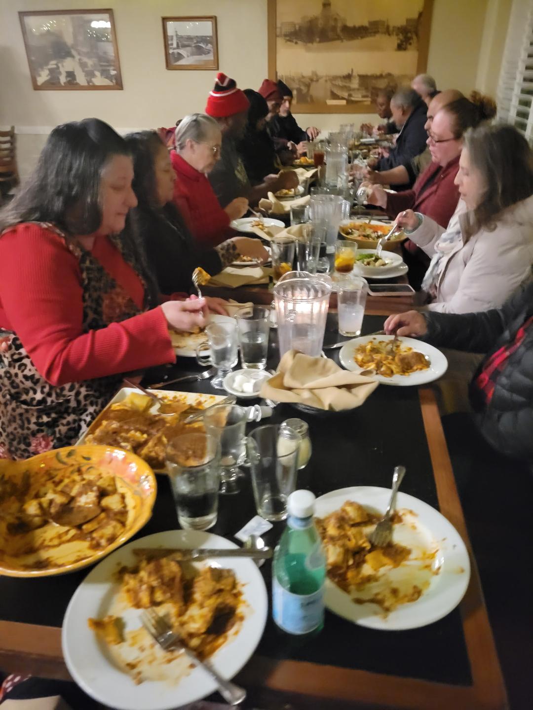The Good Samaritan Training Center once again held its Christmas dinner at Angelina's. They served us family style Italian salad, bottomless garlic bread, lasagna and ravioli.